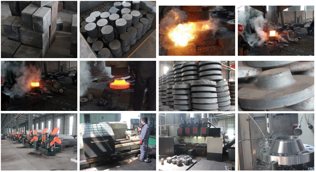 2.2 Flange blank forging. Flanges are forged by placing qualified blanks in heating furnace according to the forging process requirements of the corresponding materials. The blanks of large-scale pipes are forged freely under the splint hammer. All flange blanks shall meet the above requirements of grade II forgings. The blanks of different materials are processed according to the requirements of the process cards for the corresponding heating temperature and holding time.