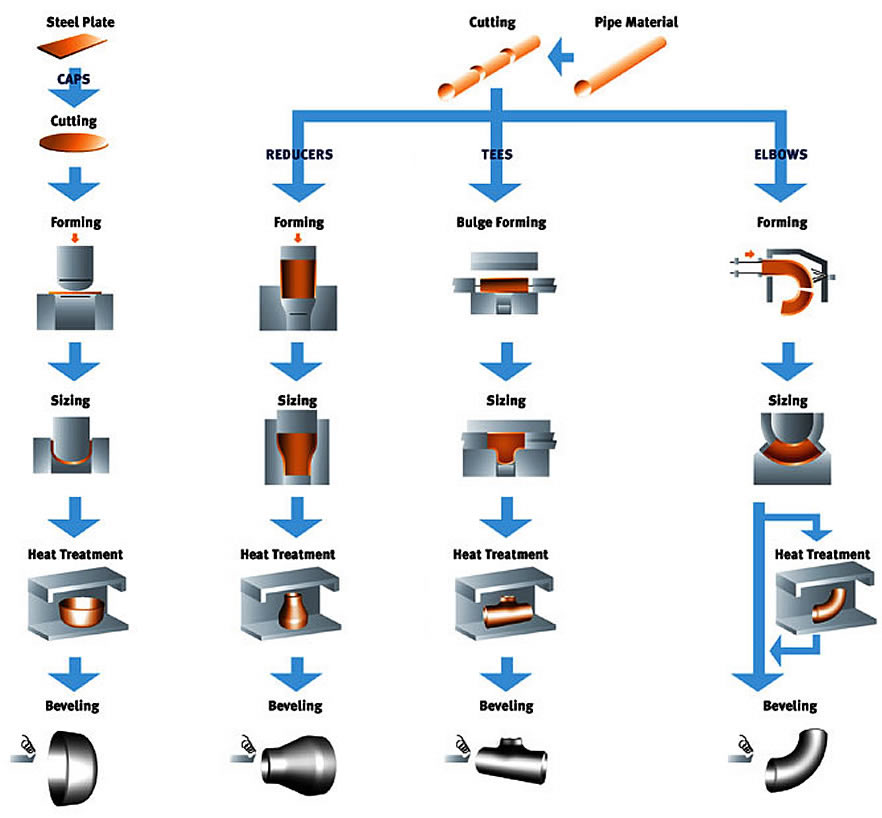 The series of steps involved in the manufacturing Process of Buttweld Fittings are given in a detailed view below: