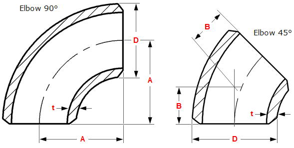 ASME B16.9 Butt Weld Elbows Dimensions